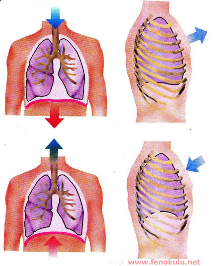 Göğüs kasları: Kasılıp gevşeme yaparak göğüs kafesinin hacmini değiştirir(Özkan,2010).