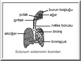 Solunum sistemini oluşturan organlar burun, yutak, soluk borusu, akciğerler ve bronşlardır.