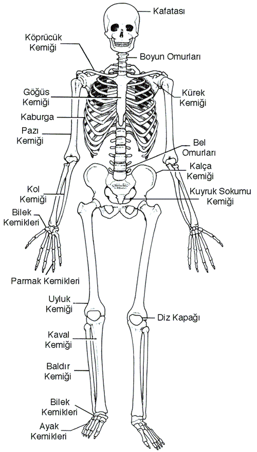 İskelet sistemimiz esas olarak kemiklerden oluşur (3). Kemikler esnek yapılı kıkırdaklardan gelişir. Doğumdan sonra kalsiyum ve fosfor minerallerinin birikmesiyle kıkırdak sertleşir ve kemik oluşur (Eski,2011).