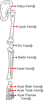 Üyeler İskeleti: Kol ve bacak kemiklerinden meydana gelir. Kollar ve bacaklar kemik köprülerle gövdeye bağlanır. Üyelerin gövdeyle yaptıkları eklemler oynar eklemlerdir(Özkan,2010).Kol kemiği Bacak kemiği